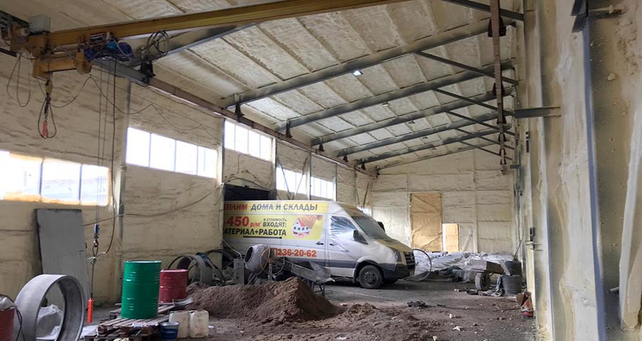 Поскольку металл обладает очень высокой теплопроводностью, то для достижения необходимой температуры внутри обязательно производится утепление ангаров. |